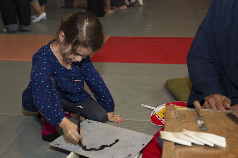 これは岩国基地、マリンコーコミュニティサービス(MCCS)、文化交流プログラム主催で訪れたもので、基地住人は習字や伝統を体験し、筆の里工房博物館を訪れた。